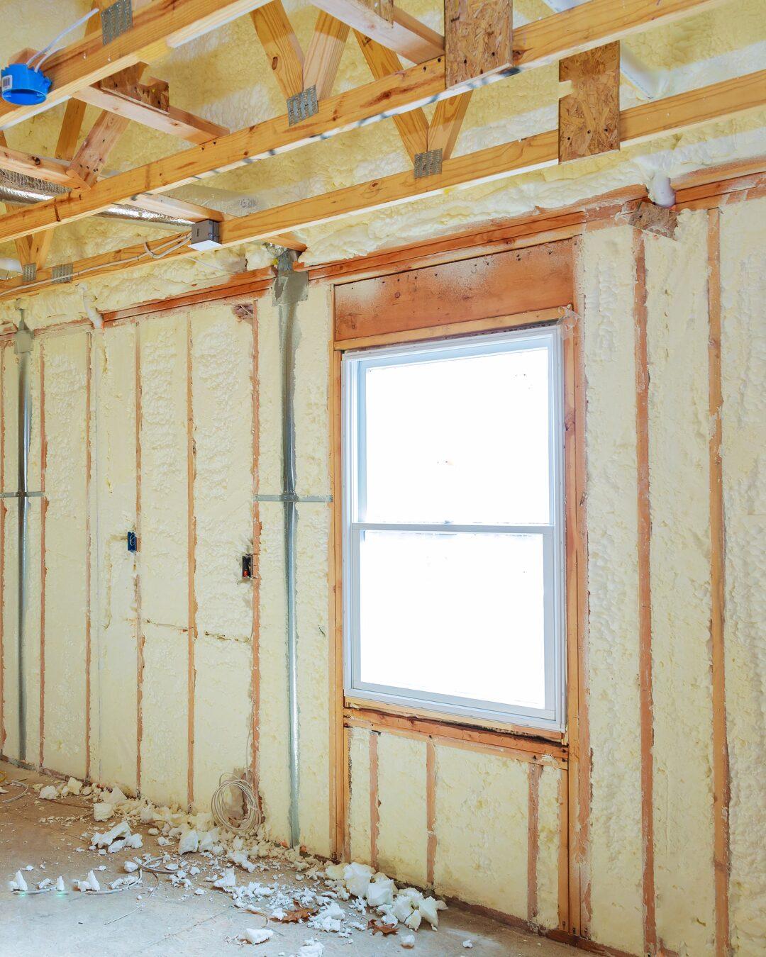 Image montrant la pose d’une isolation en fibres naturelles sur des murs intérieurs, une solution durable et performante pour améliorer le confort thermique et acoustique du logement. Ce visuel met en avant l’utilisation de matériaux écologiques, adaptés aux rénovations responsables et à l’optimisation énergétique des espaces de vie.