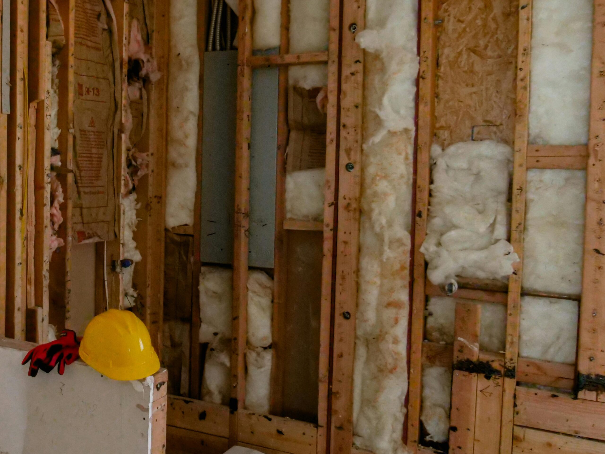 Cette image présente un casque de chantier et une paire de gants posés sur un début de cloison, face à un mur en cours de préparation pour l’isolation. Elle illustre parfaitement la phase initiale d’un chantier de rénovation énergétique. Intégrée à l’article “Les différents types d’isolants” sur le blog d’Avinkel Rénovation, elle met en lumière la rigueur apportée à chaque étape, de la sécurisation du site à la sélection des matériaux isolants. À Paris, Avinkel vous accompagne dans tous vos projets d’isolation, qu’ils soient thermiques ou acoustiques.