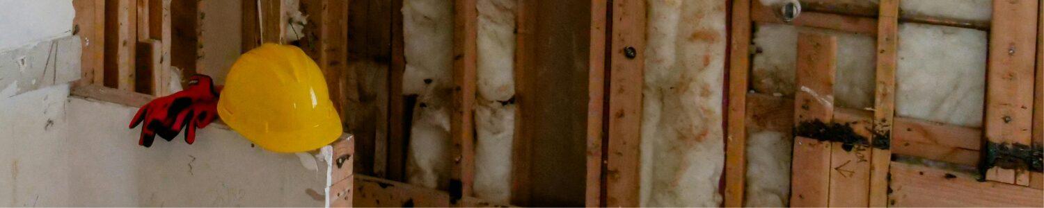 Cette photo met en scène un casque de chantier et une paire de gants posés sur un mur partiellement préparé pour des travaux d’isolation. L’image illustre le contexte de l’article “Les différents types d’isolants”, publié sur le blog d’Avinkel Rénovation. Elle symbolise l’importance de la sécurité, de la préparation et du choix du bon isolant selon les besoins du bâtiment. À Paris, Avinkel accompagne ses clients dans chaque étape de leurs projets de rénovation énergétique.