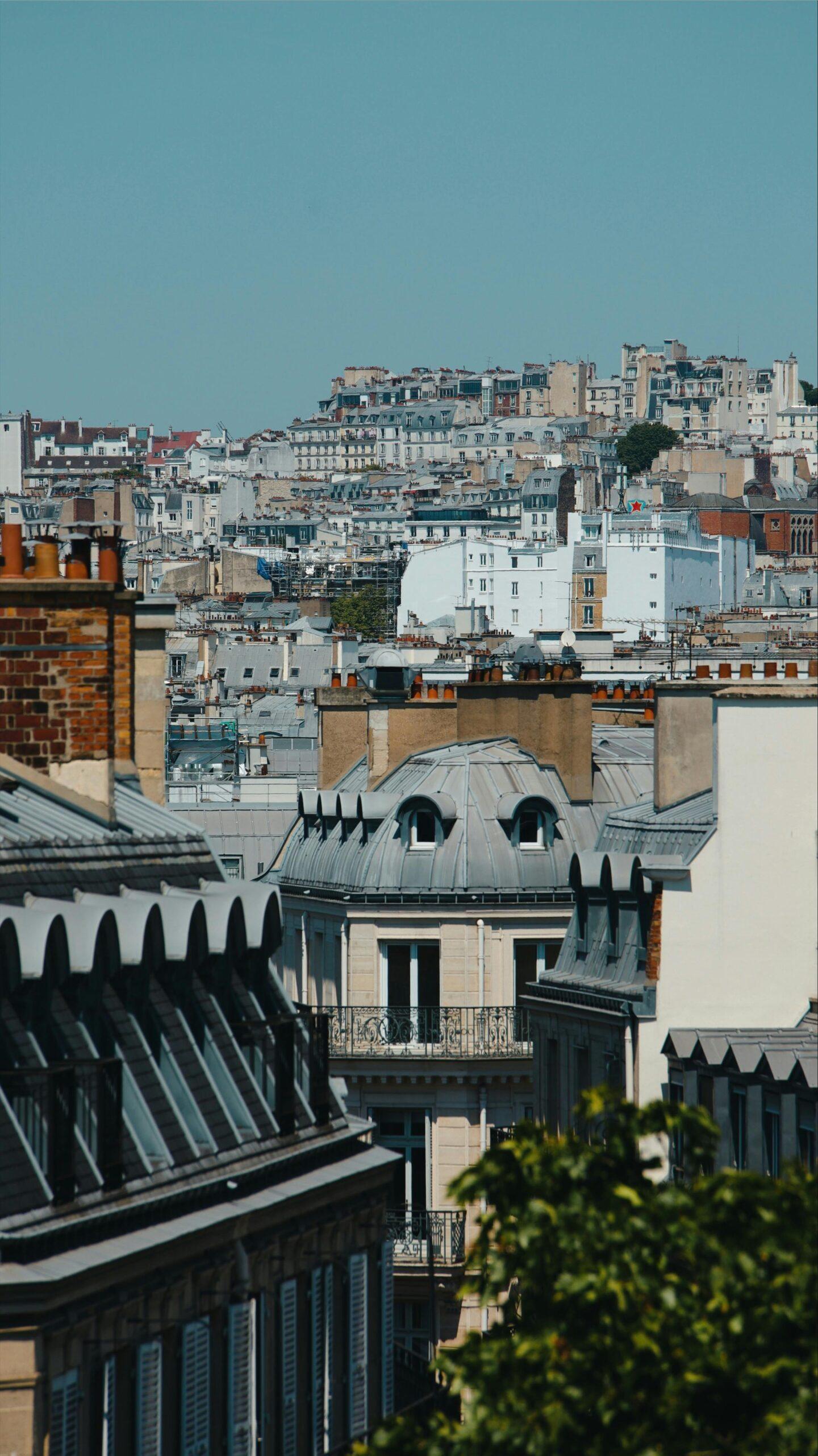 Photo offrant un magnifique cliché capturé depuis les hauts des toits de Paris, mettant en valeur le panorama urbain, les immeubles haussmanniens et l’atmosphère unique de la capitale. Idéal pour illustrer des projets de rénovation ou d’aménagement bénéficiant d’une vue privilégiée sur Paris.