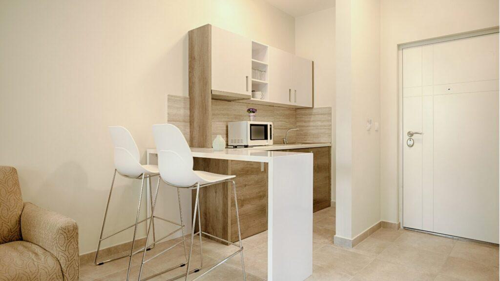 Chaque appartement parisien impose sa propre contrainte structurelle et l’analyse de la configuration est le premier pas vers l’optimisation. L’implantation en I, ou linéaire, est très fréquente dans les appartements dits traversants. Le défi majeur ici est la largeur. Si le couloir fait moins de 1,80 m de large, on ne peut meubler que sur un seul côté. Pour optimiser, on installe des meubles de profondeur standard pour l’électroménager lourd sur un pan, tout en utilisant le mur d’en face pour des rangements ultra-fins dédiés aux épices et à la verrerie.